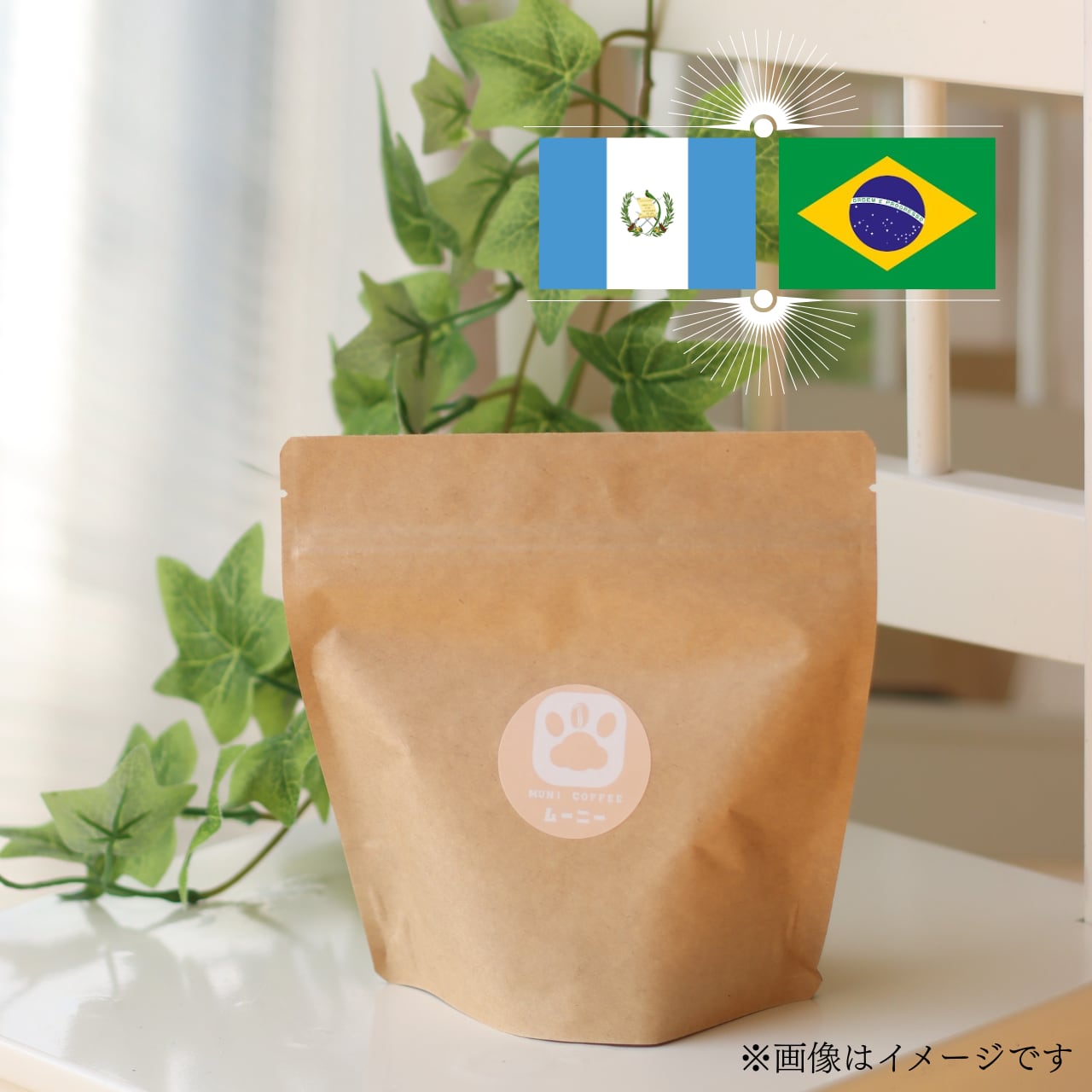 MUNI COFFEEの象徴でもあるブレンドコーヒー。一つ一つの豆を丁寧に焙煎し、焙煎後にブレンドするアフターミックスしており、各々の豆のポテンシャルを最大限に出しております!シティロースト(中深煎り)で焙煎しており、ブラジルという飲みやすい豆をベースに、グアテマラの香り高い甘味や酸味を感じることができ、カフェオレにも最適なブレンドコーヒー豆ろなっております!